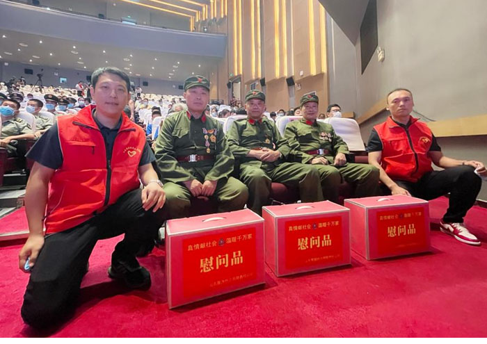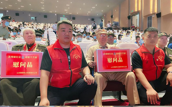 在“濟寧市慶祝八一建軍節(jié)文藝演出”現(xiàn)場,我們有幸見到了濟寧市抗日戰(zhàn)爭、抗美援朝、對越自衛(wèi)反擊的戰(zhàn)老兵代表,他們?yōu)榱吮Pl(wèi)祖國,離開家園,用滿腔的熱血和堅決斗志征戰(zhàn)戰(zhàn)場,換來了我們今天的幸福生活。借此機會山東聚源熱力公司組織退伍軍人送去節(jié)日的問候和慰問品。在與革命前輩們的交談中,我們感受的到戰(zhàn)火紛飛的革命歲月深深地刻進他們的腦海里,愛國為民的革命初心在他們心中珍藏至今。為了抗擊敵人、保家衛(wèi)國,他們曾幾度將個人生死置之度外,沖鋒在前、毫不退縮。老人們又對我們年輕一輩寄予厚望,他們講道,現(xiàn)如今祖國繁榮富強,人民安居樂業(yè),希望你們年輕一輩,接過時代的接力棒,銘記永不磨滅的愛國精神,在新時代建立屬于你們的功勛。